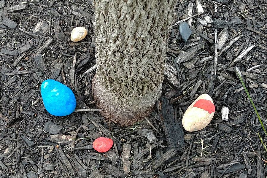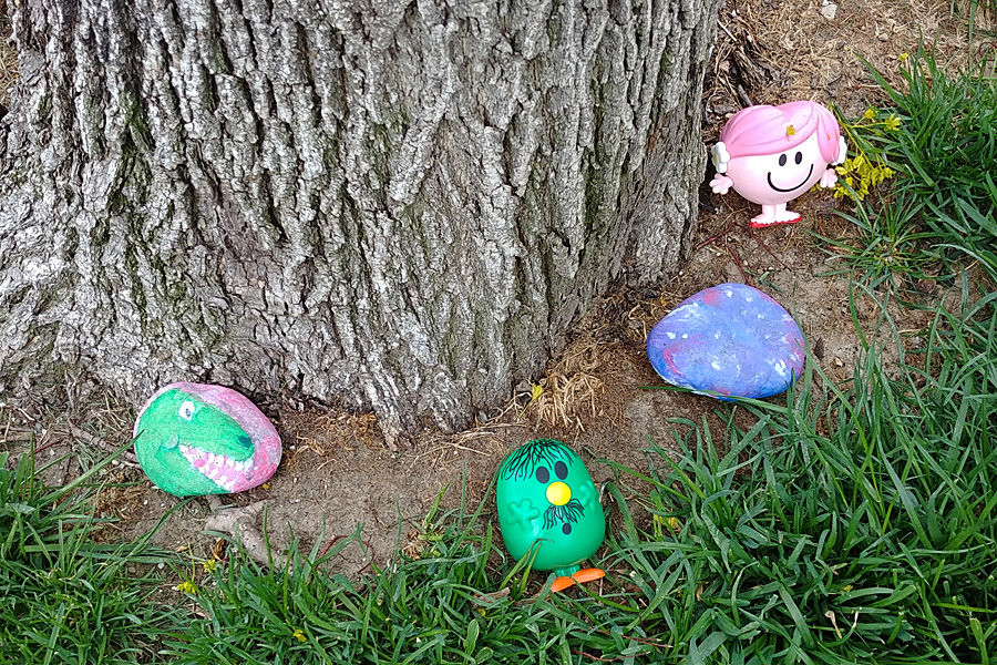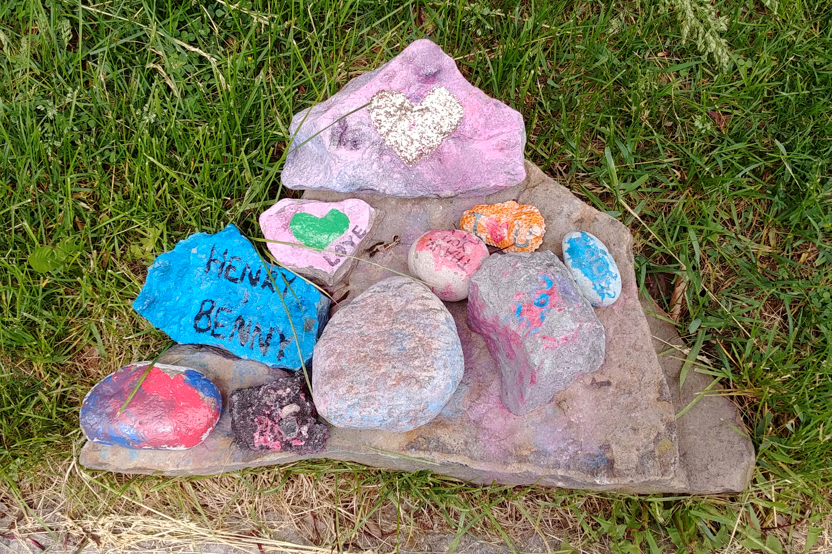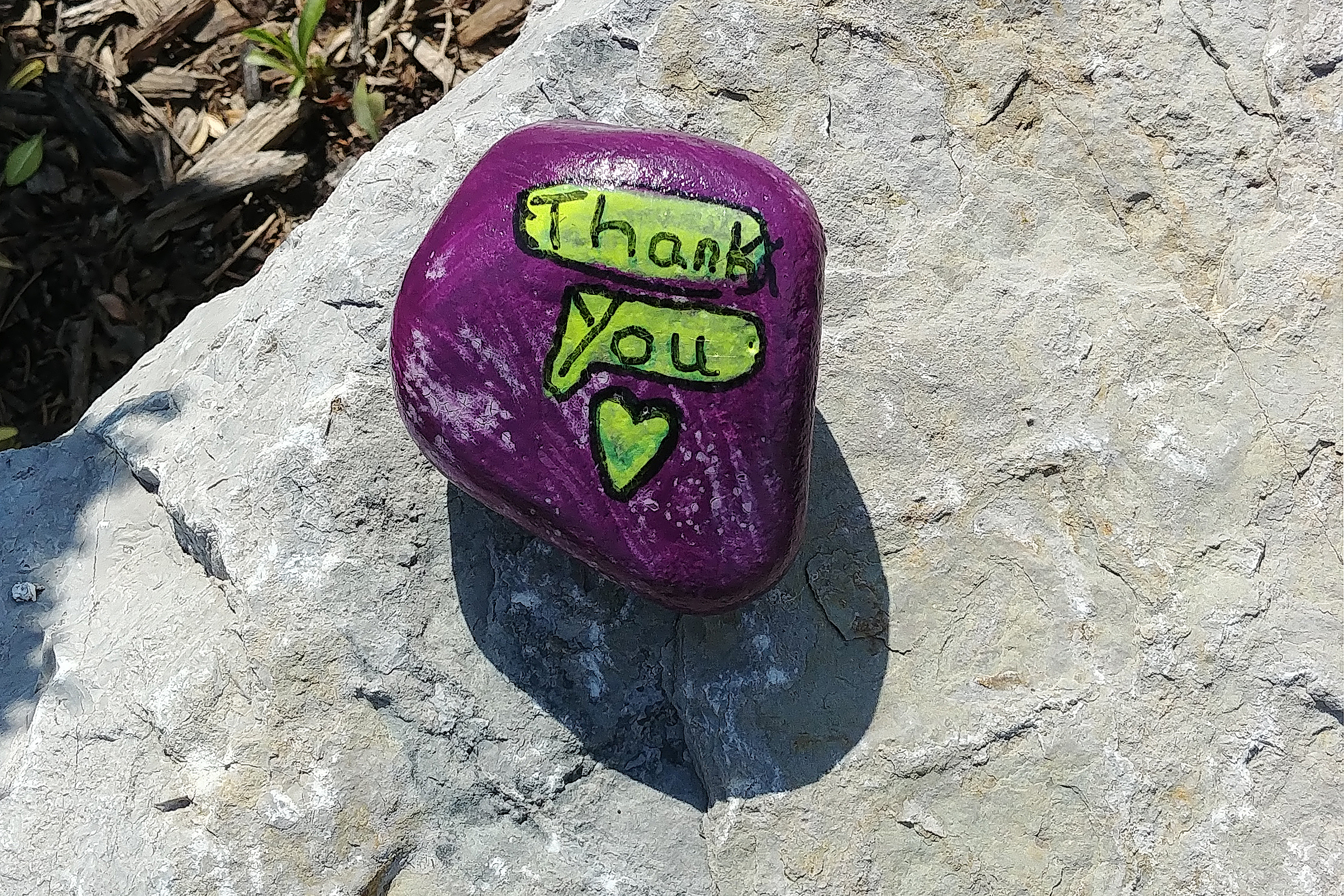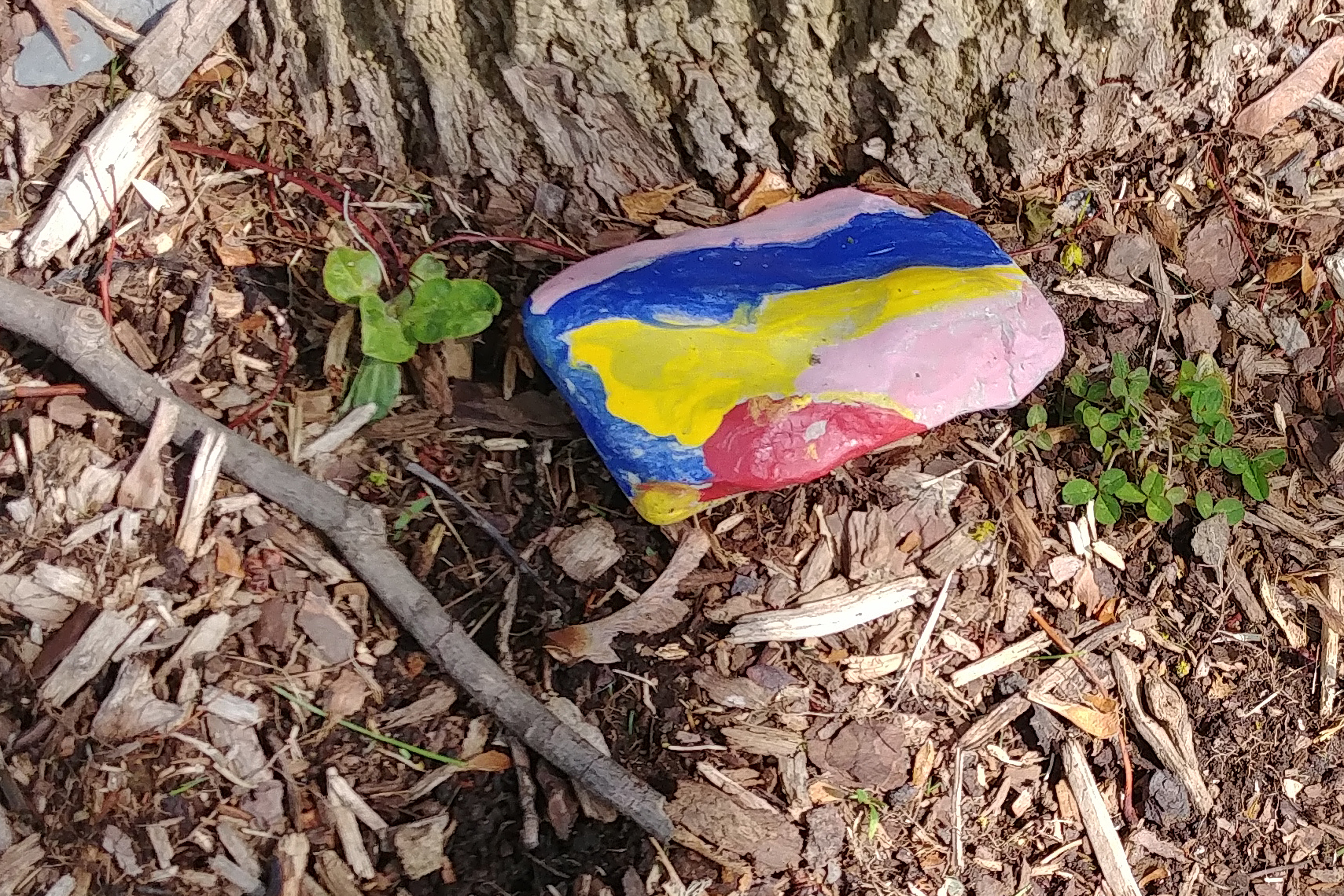 In order to thank first responders, bring a cheer to someone in need or to give people purpose, painted stones have been popping up in every neighbourhood. Here are some stones I found on my walks: